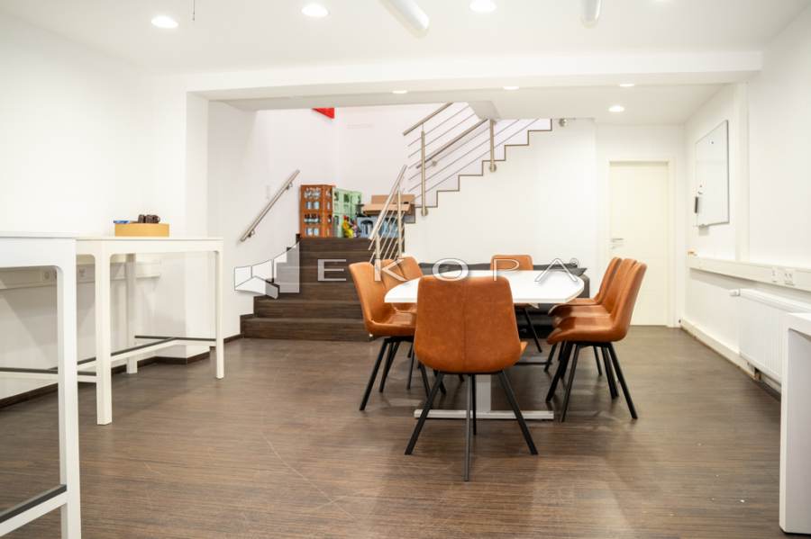 Großzügige Schaufensterflächen schaffen eine hervorragende Sichtbarkeit im Straßenbild. Im Inneren erwarten Sie helle Räumlichkeiten, moderne Beleuchtung, hochwertiger Bodenbelag, separate Arbeitsbereiche, Besprechungszimmer sowie Aufenthalts- und Küchenzone. Das Untergeschoss erweitert das Nutzungsprofil um Lager-/Archivflächen sowie einen abgetrennten Meeting-/Konferenzbereich.