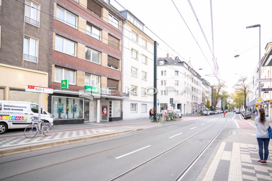 Die Immobilie befindet sich in gut sichtbarer und frequentierter Lage auf der Westfalenstraße 83 in Düsseldorf-Rath. Die Umgebung bietet ein lebendiges, urbanes Umfeld mit hohem Kundenaufkommen, vielfältigen Einkaufsmöglichkeiten, Gastronomie, Dienstleistungen sowie idealen Anbindungen an den ÖPNV. Straßenbahn- und Bushaltestellen befinden sich direkt im Umfeld, die S-Bahn-Station ist fußläufig erreichbar. ... mehr