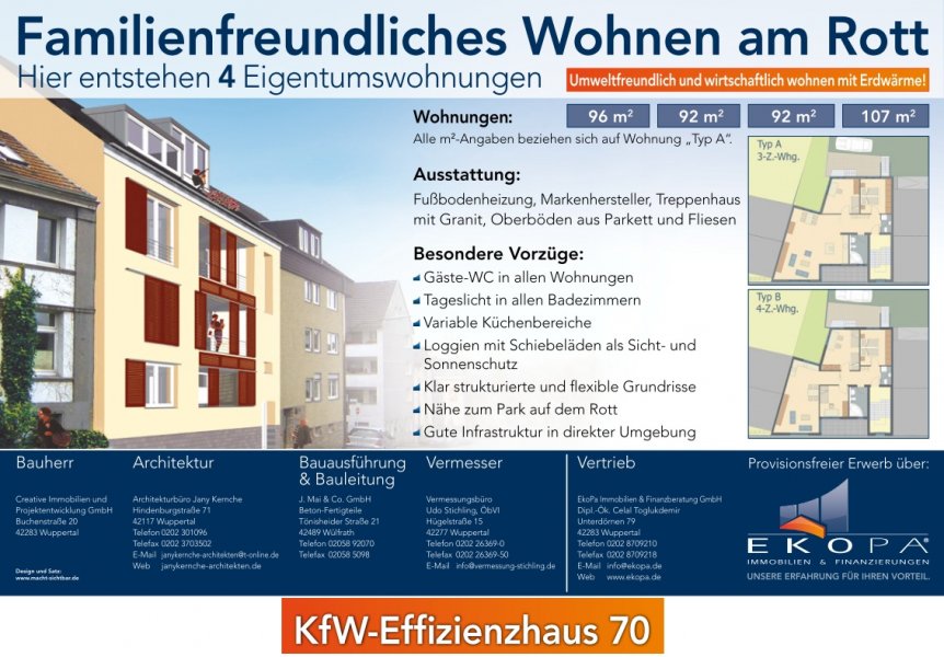Der Neubau liegt in dem charmanten und reizvollen Stadtviertel Rott in Wuppertal Barmen.