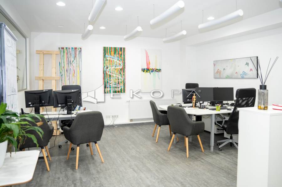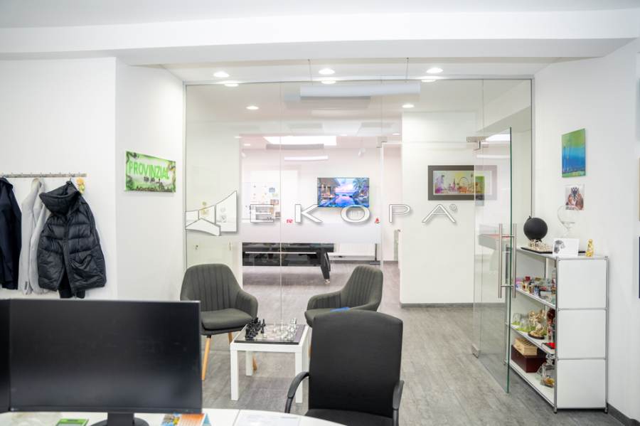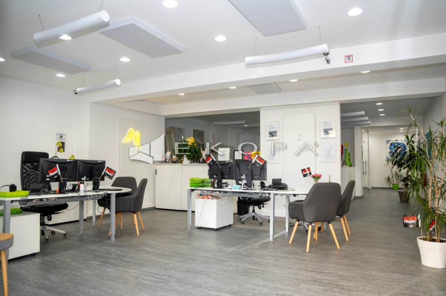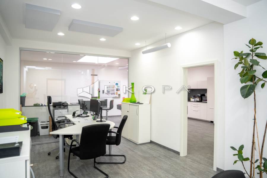 Großzügige Schaufensterflächen schaffen eine hervorragende Sichtbarkeit im Straßenbild. Im Inneren erwarten Sie helle Räumlichkeiten, moderne Beleuchtung, hochwertiger Bodenbelag, separate Arbeitsbereiche, Besprechungszimmer sowie Aufenthalts- und Küchenzone. Das Untergeschoss erweitert das Nutzungsprofil um Lager-/Archivflächen sowie einen abgetrennten Meeting-/Konferenzbereich.