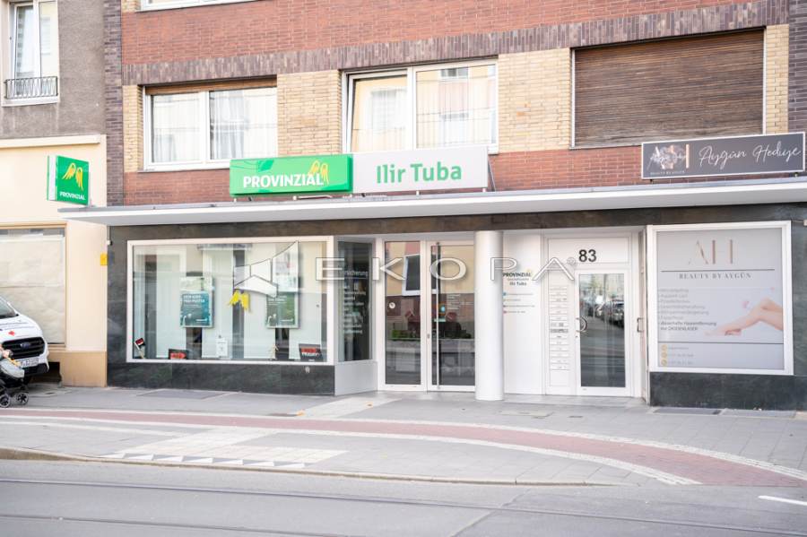 Die Immobilie befindet sich in gut sichtbarer und frequentierter Lage auf der Westfalenstraße 83 in Düsseldorf-Rath. Die Umgebung bietet ein lebendiges, urbanes Umfeld mit hohem Kundenaufkommen, vielfältigen Einkaufsmöglichkeiten, Gastronomie, Dienstleistungen sowie idealen Anbindungen an den ÖPNV. Straßenbahn- und Bushaltestellen befinden sich direkt im Umfeld, die S-Bahn-Station ist fußläufig erreichbar. ... mehr