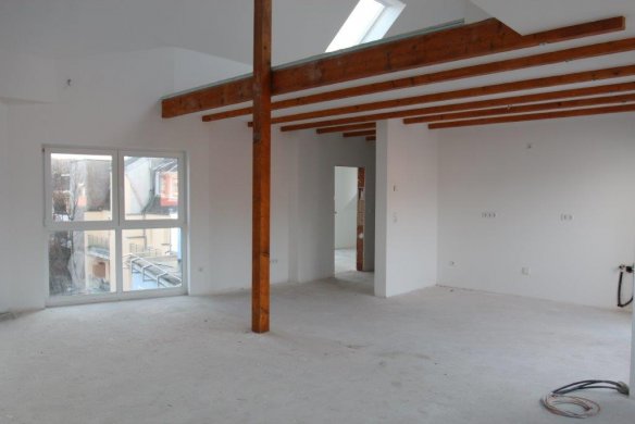 Der Neubau wird aus massiven Wänden und mit Stahlbetondecken erstellt. Das Dach ist ein ca. 45 Grad geneigtes Satteldach in Holzkonstruktion mit Gauben und Dachloggia