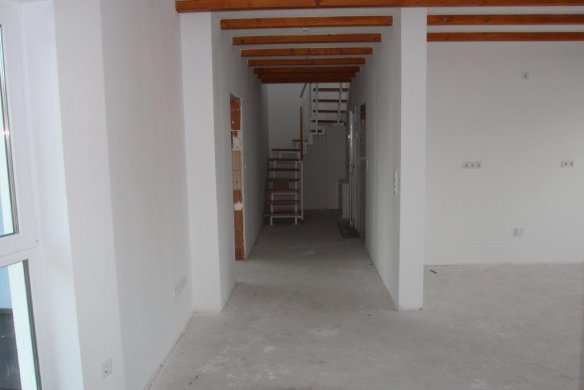 Direkter Blick aus dem Wohnraum zu dem Aufgang/Treppe zur Galerieebene