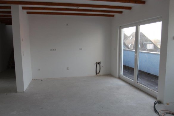 Wohnraum mit Blick auf Küche und Balkon (Nord-West-Ausrichtung)