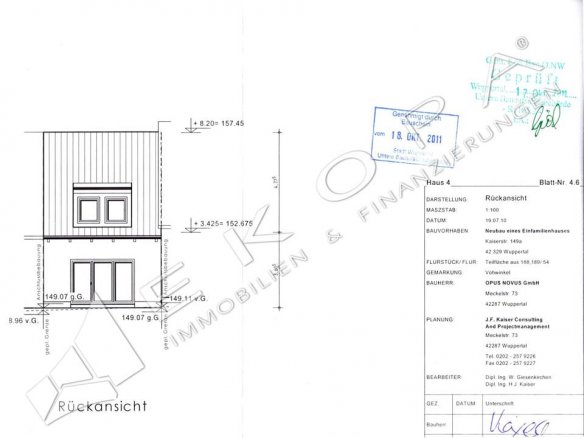 Die Einfamilienhäuser werden als Reihenhäuser mit Stellplätzen auf den Baugrundstücken mit Keller gemäß den Plänen in massiver Ausführung erstellt.