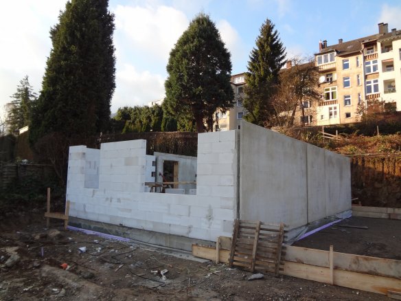 Innenwände werden aus Gasbetonsteinen, alternativ in Ständerwerk,
